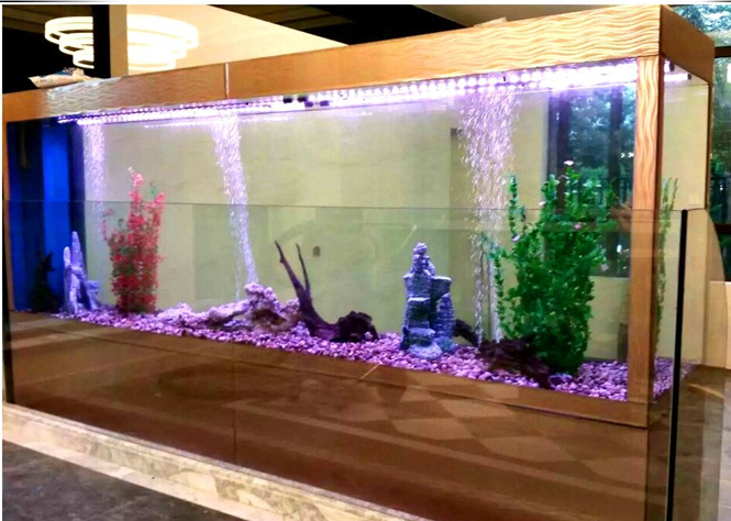 亞克力魚缸是一種高檔次的水族產品,缸體整體通透無接縫,比普通的玻璃魚缸更具美觀與安全性能。亞克力具有高透明度,透光率達92%,有“塑膠水晶”之美譽。且有極佳的耐候性,尤其應用于室外,居其他塑膠之冠,并兼具良好的表面硬度與光澤,加工可塑性大,亞克力可制成各種所需要的形狀與產品。另板材的種類繁多色彩豐富(含半透明的色板),亞克力另一特點是厚板仍能維持高透明度。 |